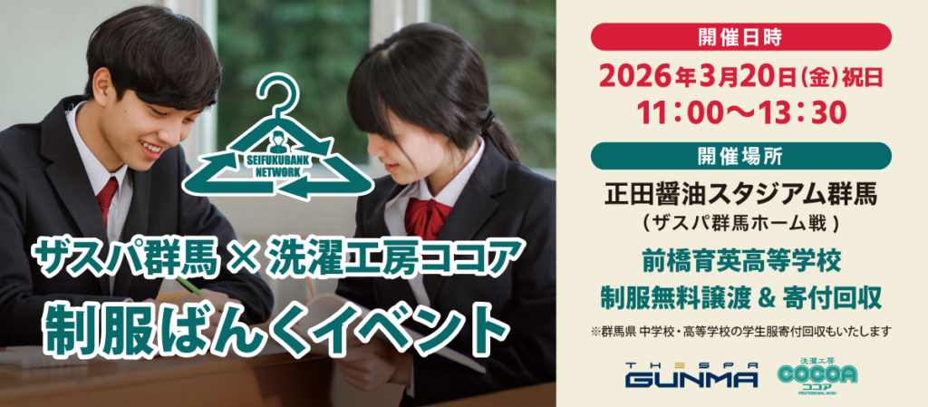 今後の「衣類の譲渡会」「制服ばんく譲渡会」などの開催、地域衣類循環やクリーニングの「コト」など様々な配信をいたします。ぜひ、お友だち登録をお願いします。