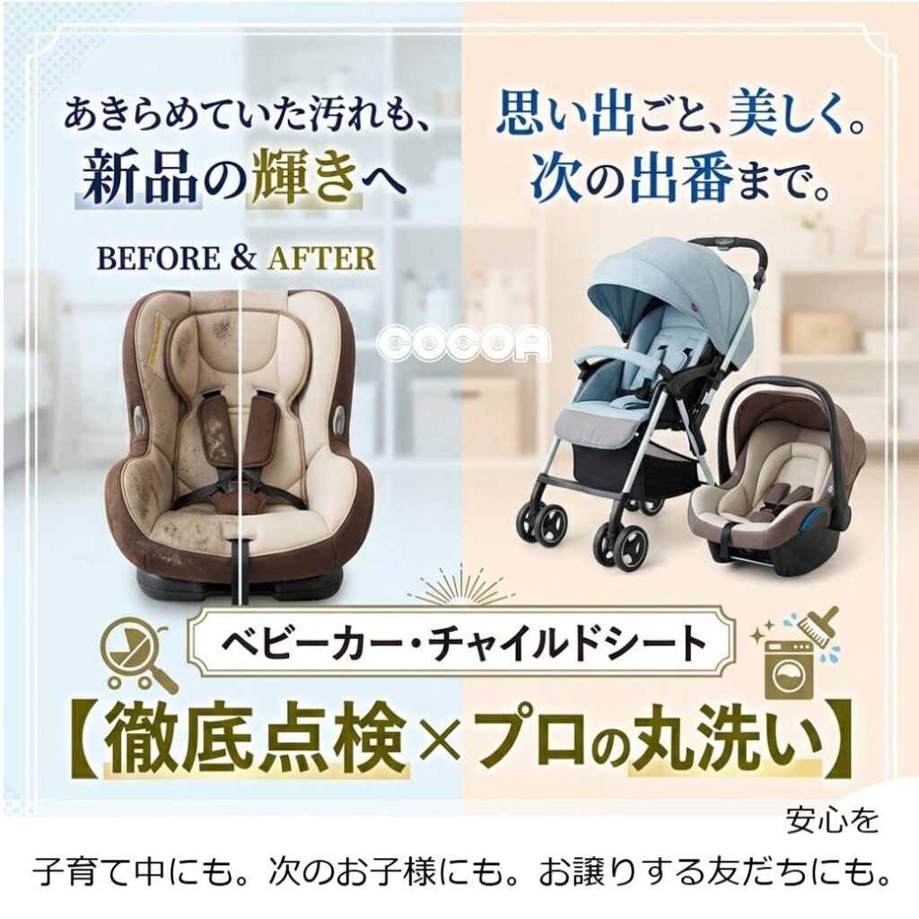チャイルドシートやベビーカーは、お子様が毎日触れる、いわば「もう一つの大切な居場所」です。