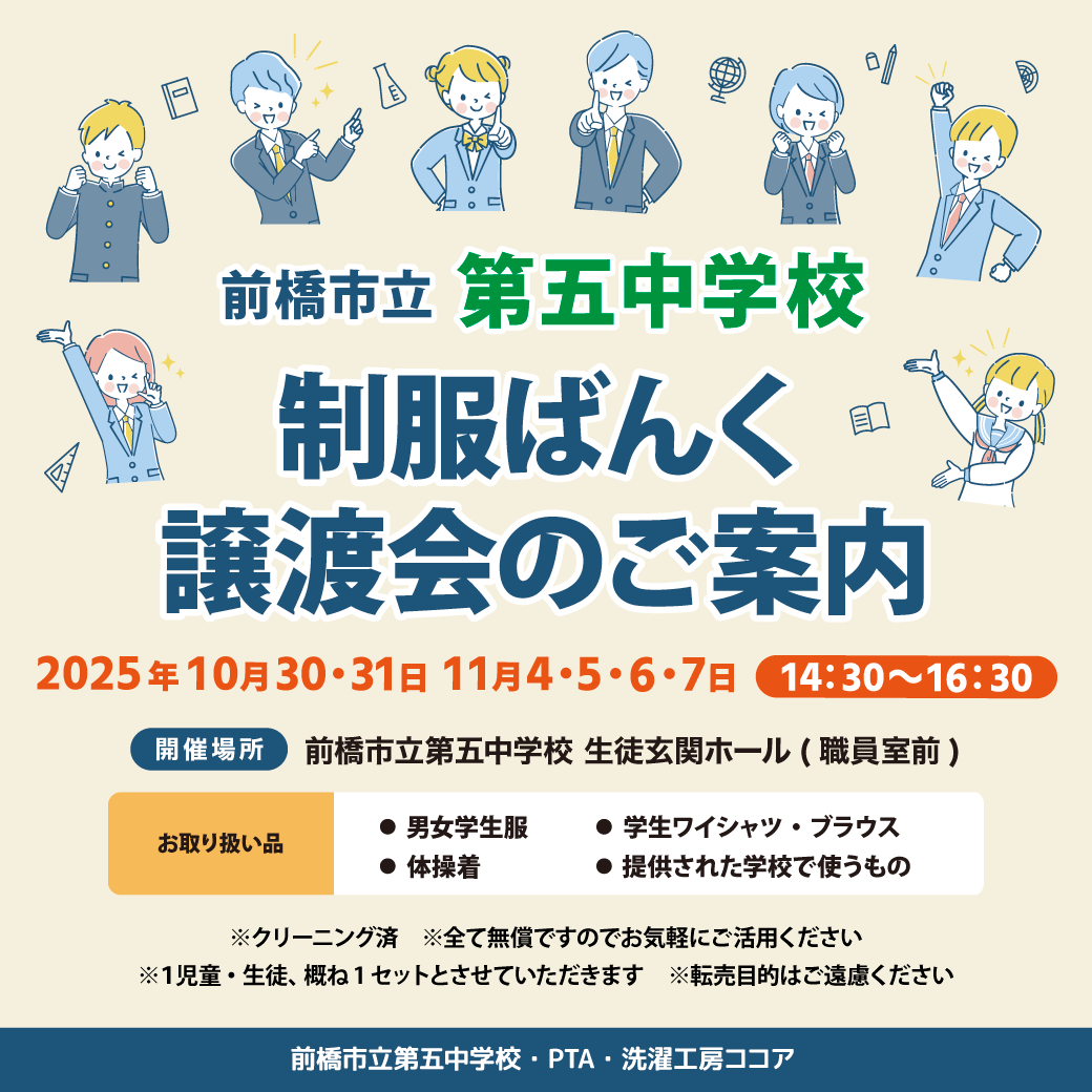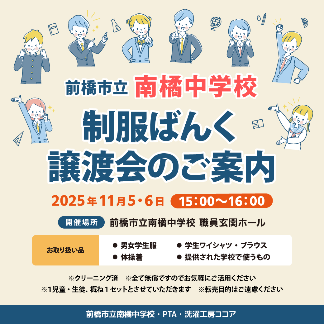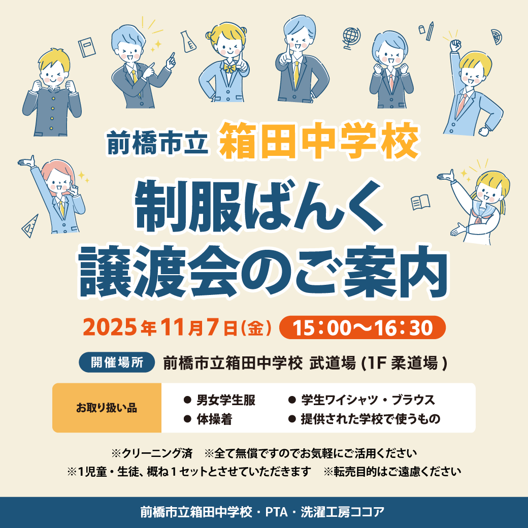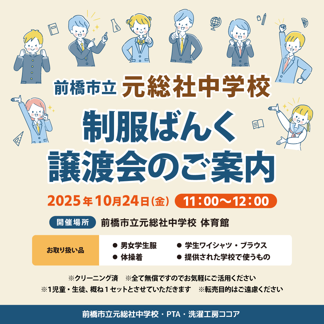 「制服ばんく 譲渡会のご案内」開催です