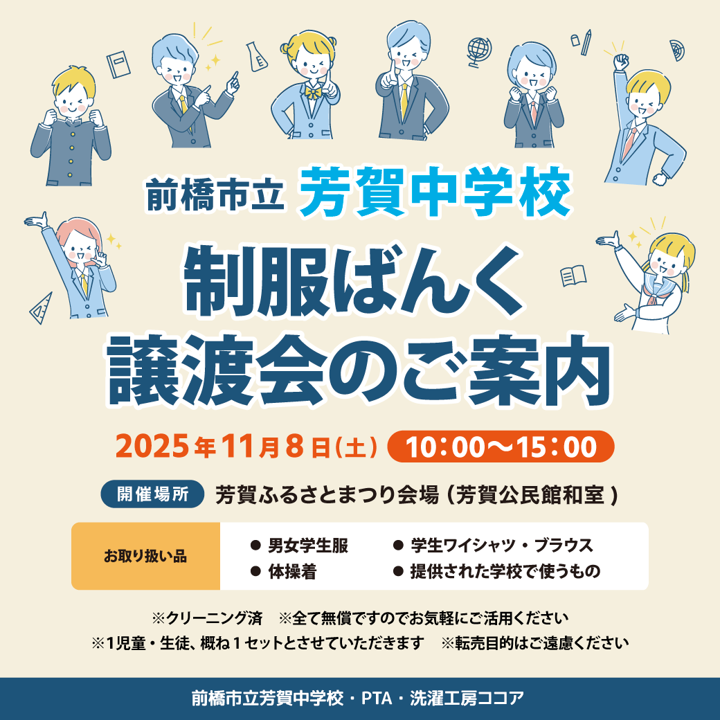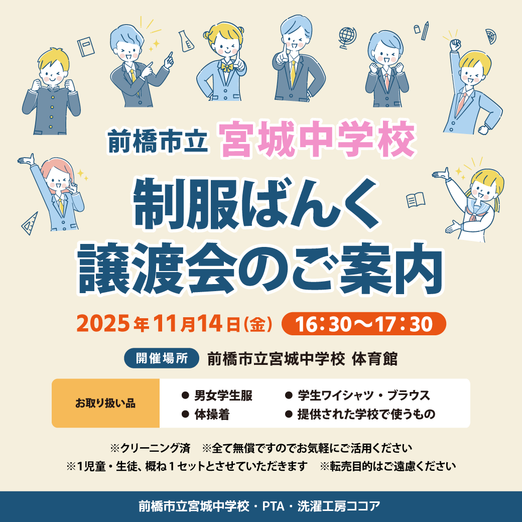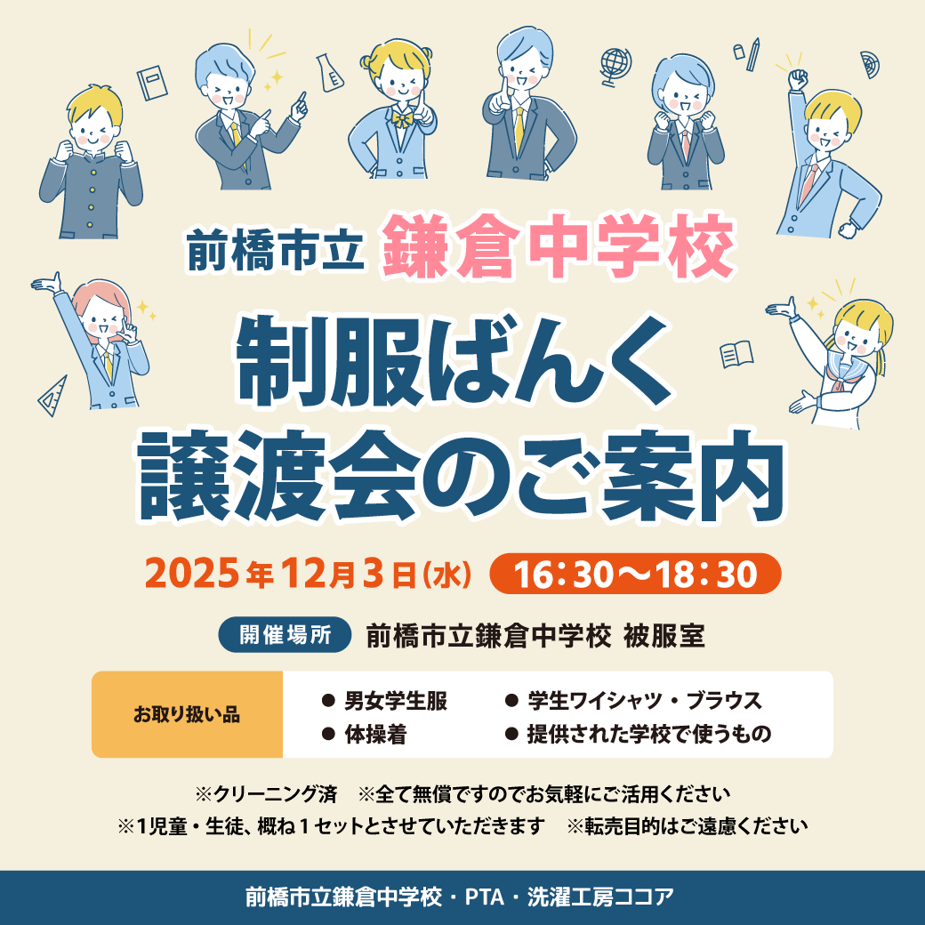 「制服ばんく 譲渡会のご案内」開催です