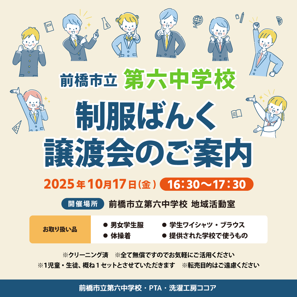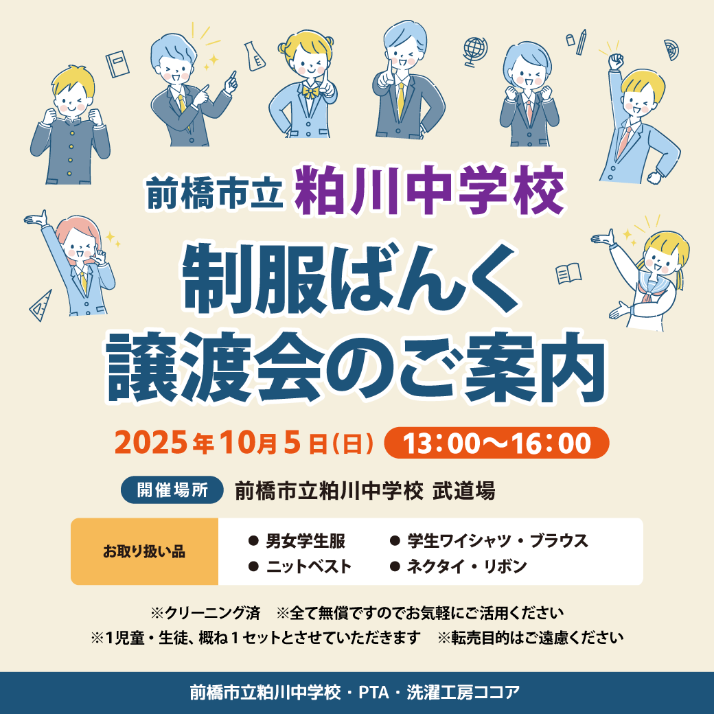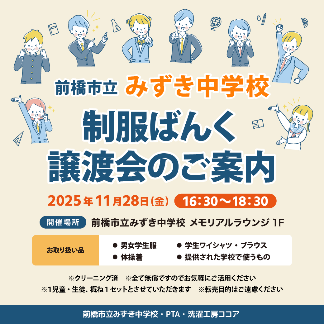 「制服ばんく 譲渡会のご案内」開催です